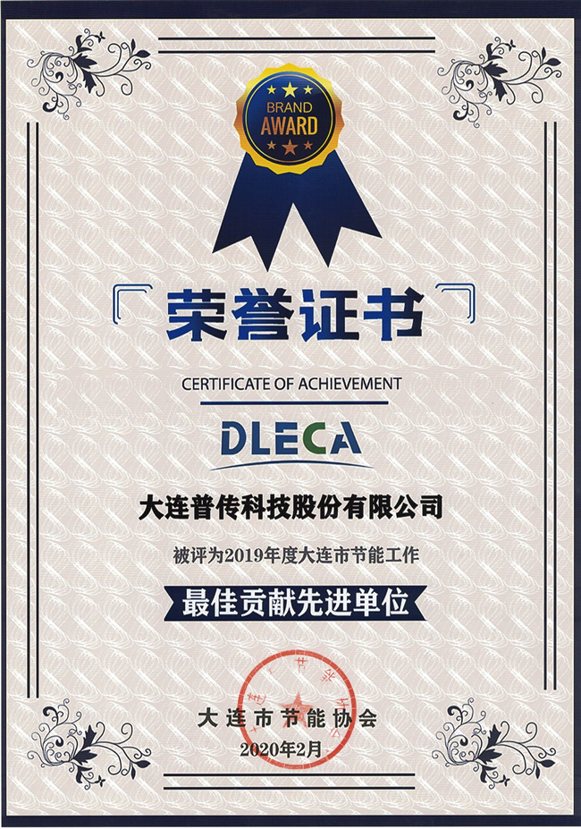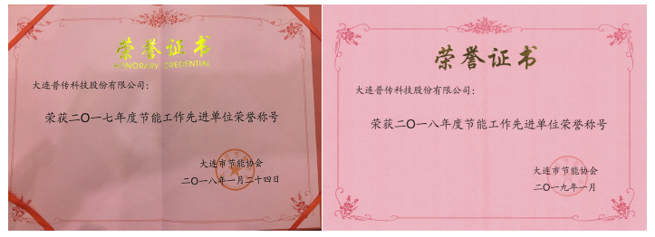On June 16, 2011, during the "National Energy Conservation Week", the annual meeting of Dalian Energy Conservation Association and energy-saving technology report meeting was held.Puchuan Technology was awarded "2010 Advanced Unit of Energy-saving Association".At the same time, the meeting announced the first batch of "energy saving service enterprises" in Dalian city, and issued the recommendation certificate.As a general transmission technology committed to the "motor system energy conservation project" with efficient and advanced technology and products and feasible solutions, is recommended.