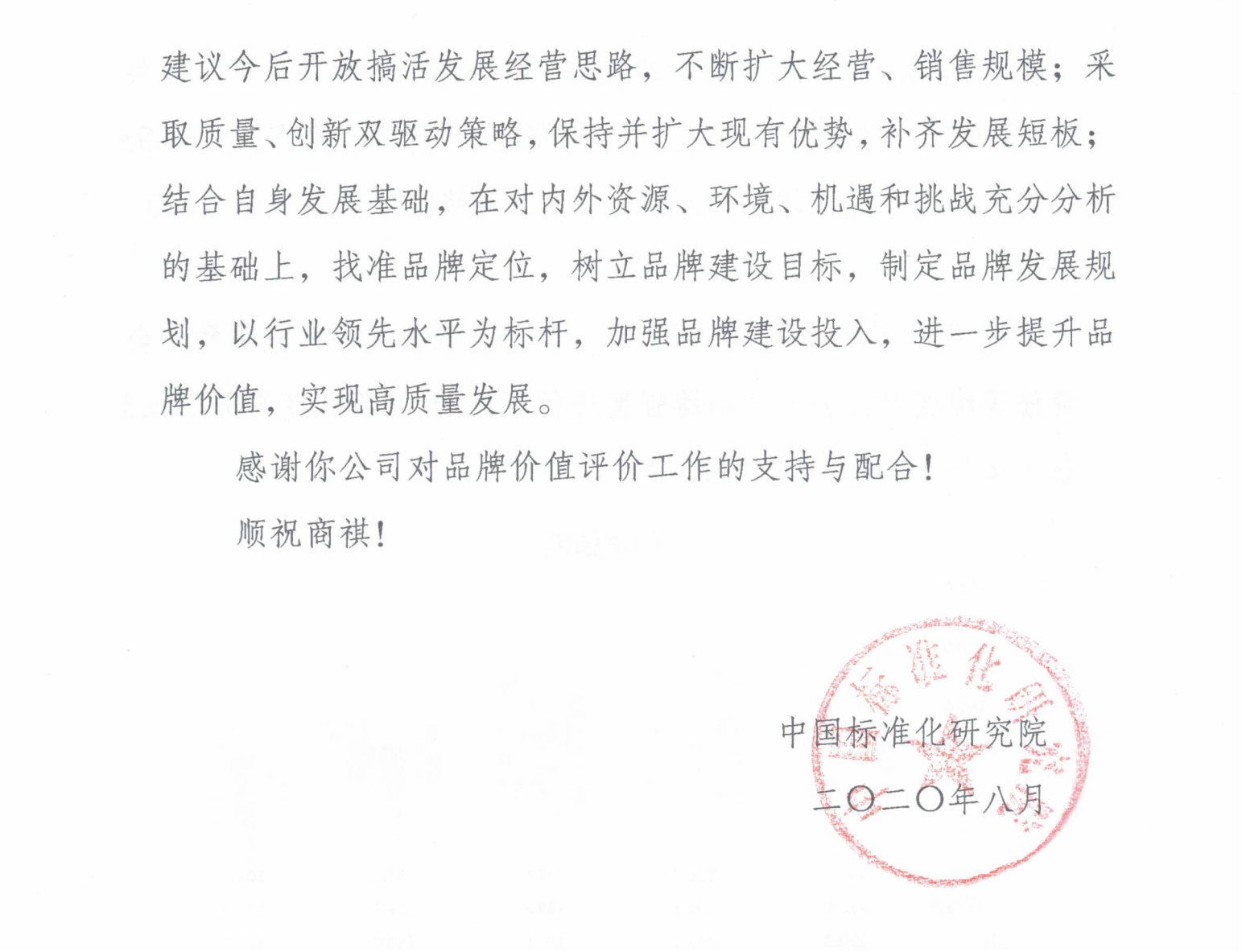 At the same time, the research institute put forward suggestions for the future development of the company, more open and invigorate the development of management ideas, and constantly expand the scale of operation and sales;Adopt the quality and innovation dual driving strategy, maintain and expand the existing advantages, make up for the development of the weak links;Combined with the foundation of its own development, on the basis of full analysis of internal and external resources, environment, opportunities and challenges, identify the right brand positioning, establish brand construction objectives, develop brand development plans, take the leading level of the industry as the benchmark, strengthen brand construction investment, further enhance brand value, and achieve high-quality development.