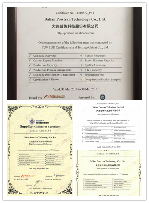 The Germany Rhine TüV company of our head office in Dalian and Shenzhen branch, respectively, has carried on the review, specifically for our company profile, human resources, production, sales, export capacity, quality control, process management capability, R&D management ability, enterprise development planning skills on the field investigation, make authoritative assessment,and develop capability assessment report (report No. : 7466834-P+T) and main product report (report No. : 7466833-P+T).These two reports truly demonstrate the comprehensive strength and professionalism of our company.