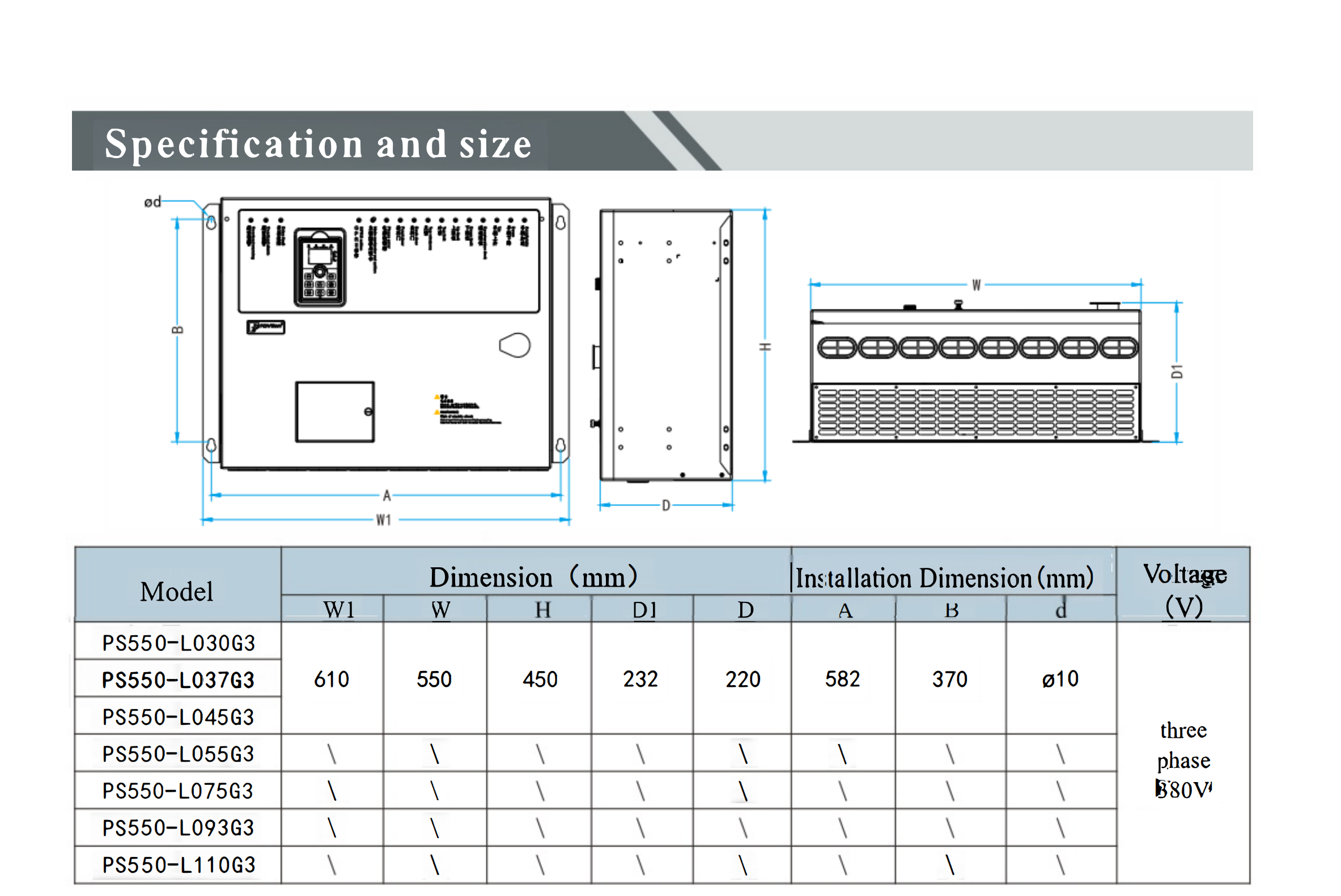 PS550-L series is the dedicated integrated machine for construction hoist. The use of variable frequency speed control technology can realize the start-up acceleration and deceleration of the construction elevator and the stepless speed variation in the process of braking, reducing the impact of the motor on the mechanical system during the shutdown and improving the smoothness and comfort during the operation of the construction elevator. It extends the service life of the construction elevator and greatly improves the work efficiency.