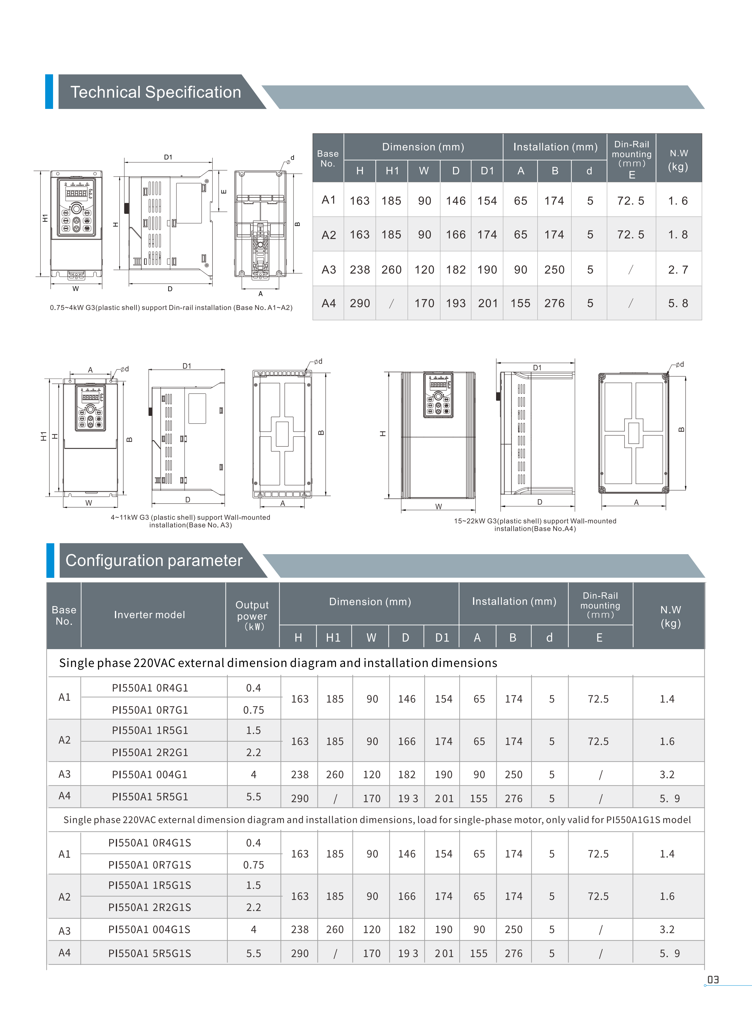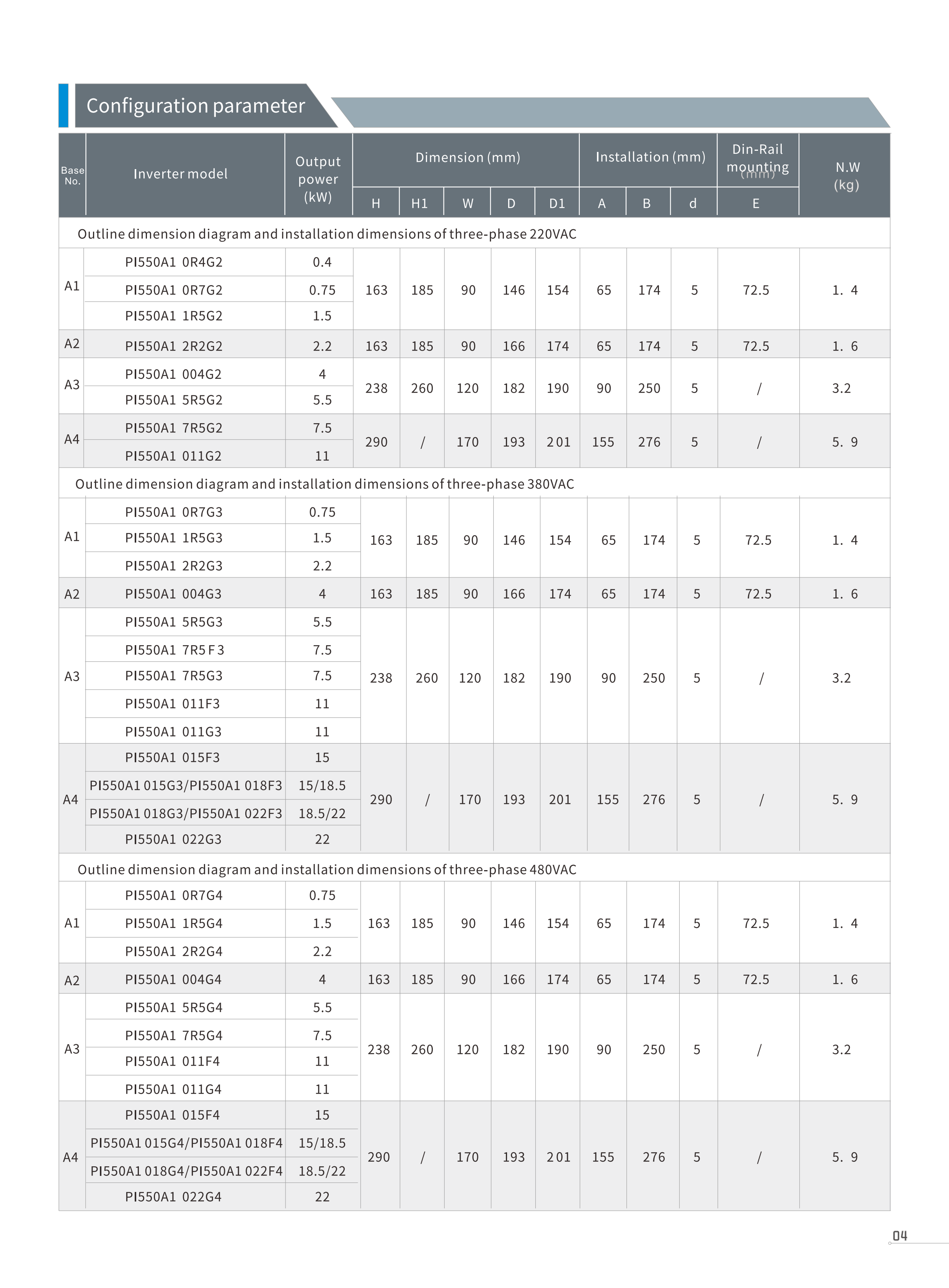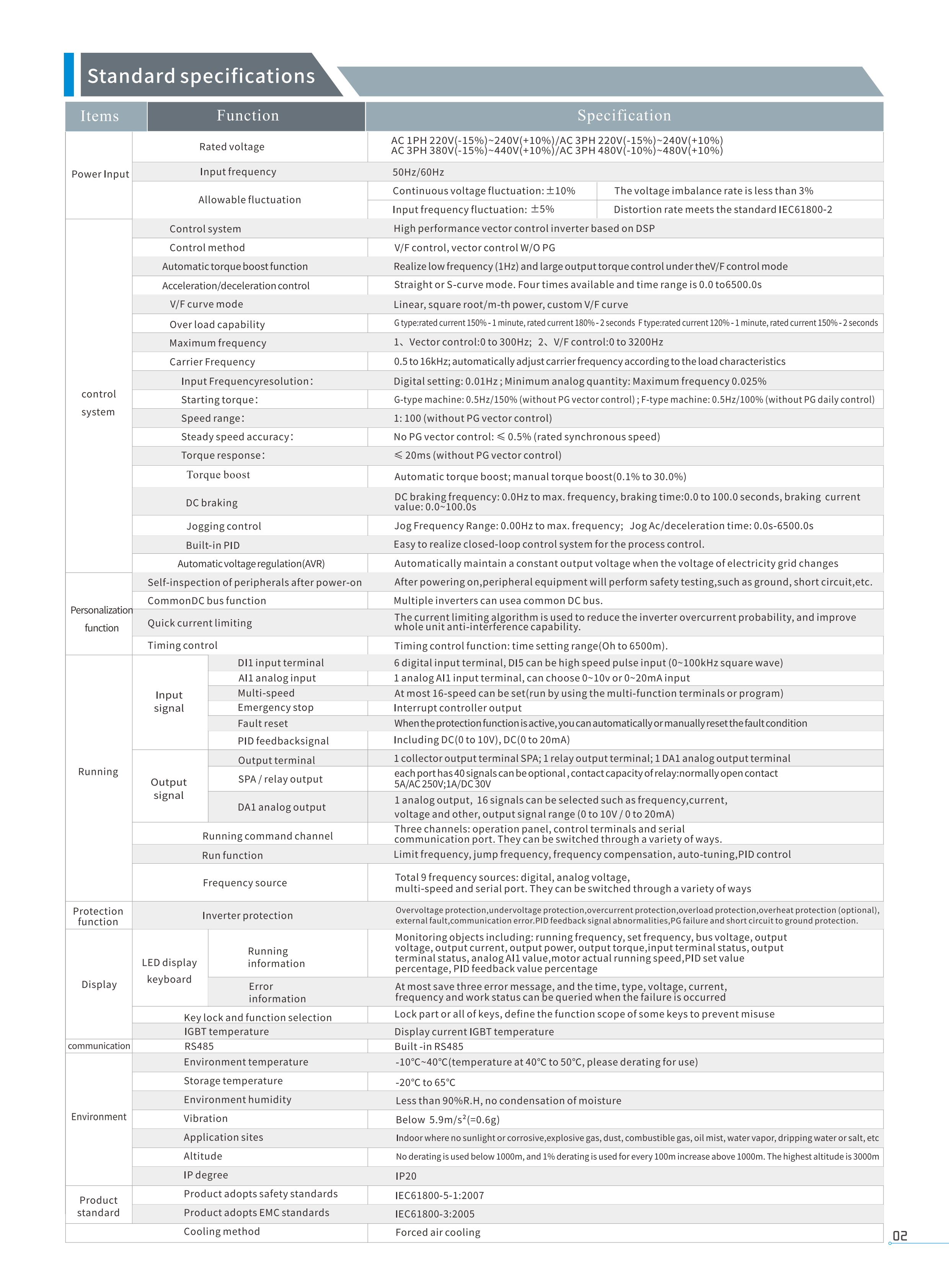 1)Environment temperature -10 ℃ to 50 ℃, temperature at 40 ℃, please derating for use, derating at 3% per 1°C drop. It is not recommended to use the inverter in the environment above 50°C.