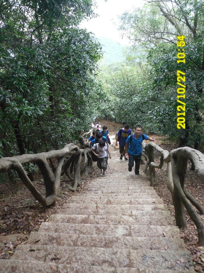 一行三十多人從梧桐村入口處,沿著逶迤陡峭的山路,穿過蔭翳的林木,向山頂一路攀登。 由于道路極為曲折,沒走多久,個個都已是汗流浹背,疲憊不已。但越是往前走,越是可以看到更多的美景。一路上,大家相互扶持著、鼓勵著,以堅定的信念、頑強的毅力不斷往前爬去,挑戰每一個臺階,每一段路途,朝著山頂目標勇敢的前進。當站在好漢坡一帶,迎著晨暉,眺望香港、大鵬灣、鹽田港和沙頭角,海闊天空,心曠神怡,頗有會當凌絕頂,一覽眾山小之感,更有鳳兮來儀、飄飄欲仙之意。