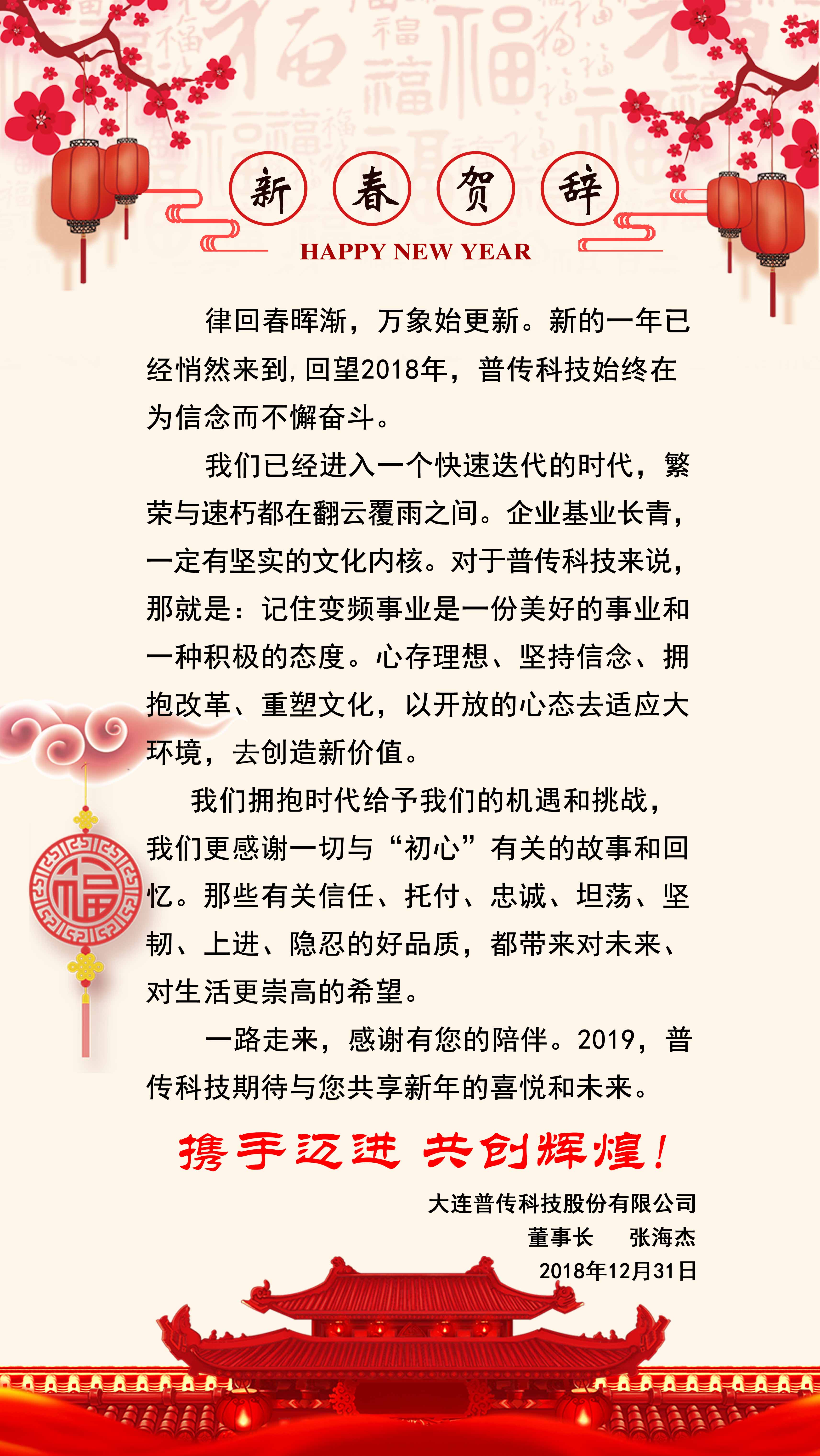 一路走來,感謝有您的陪伴。2019,普傳科技期待與您共享新年的喜悅和未來。