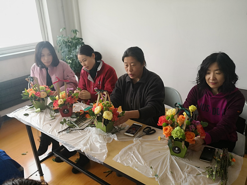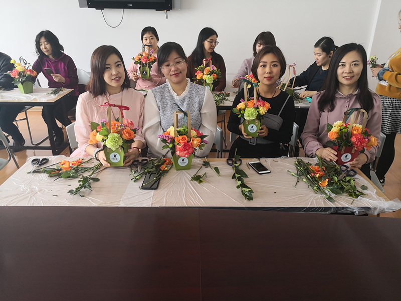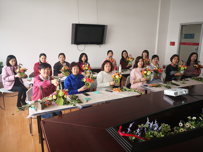 3.8當天中午,大連總部所有女生集體出現在公司活動室,一場期待已久的----插花藝術沙龍活動正在進行當中。