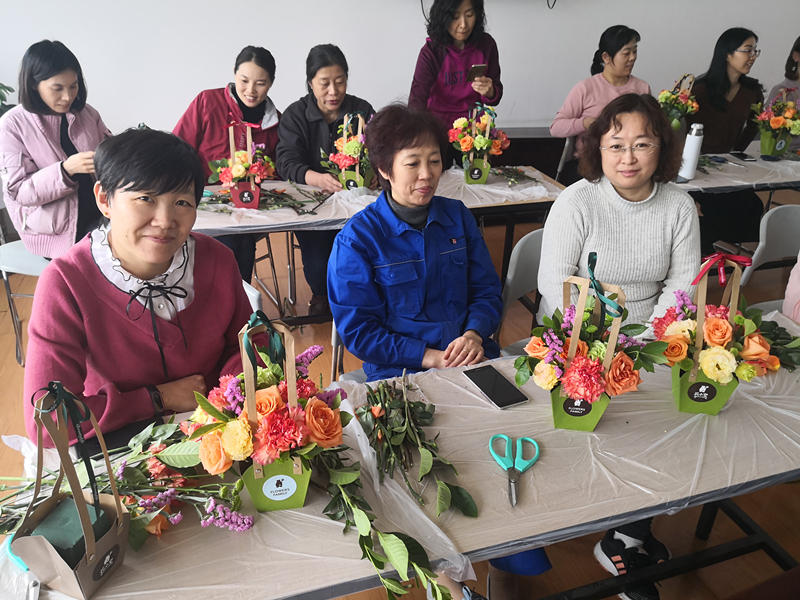 捧著自己完成的插花作品,女職工們盡情合影留念,并帶回DIY捧花妝點辦公環境。大家紛紛表示:活動浪漫溫馨,在女神節來臨之際親手完成一件送給自己的禮物,非常有意義。花藝,讓生活變得更美好!