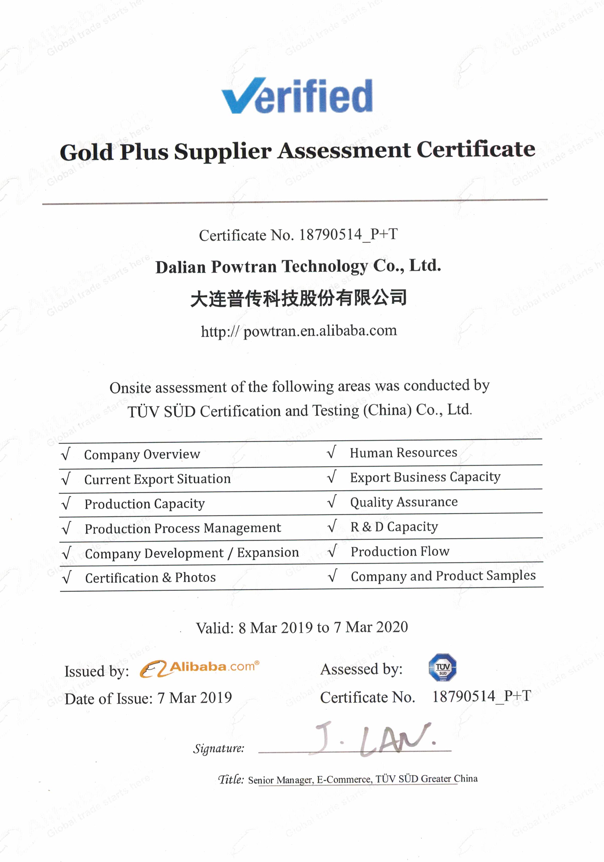 為了更好地彰顯公司經營狀況,展示公司整體實力,經我司申請,阿里巴巴國際站委托第三方認證機構---德國TüV 南德認證檢測(中國)有限公司 ( TüV SüD Certification and Testing (China) Co.,Ltd), 來我司進行了實地認證,驗廠結果由第三方機構現場拍攝匯集而成的專業報告,如實展示工廠生產能力、經營狀態,旨在幫助買家進一步了解工廠當前真實生產能力并快速做出決策。