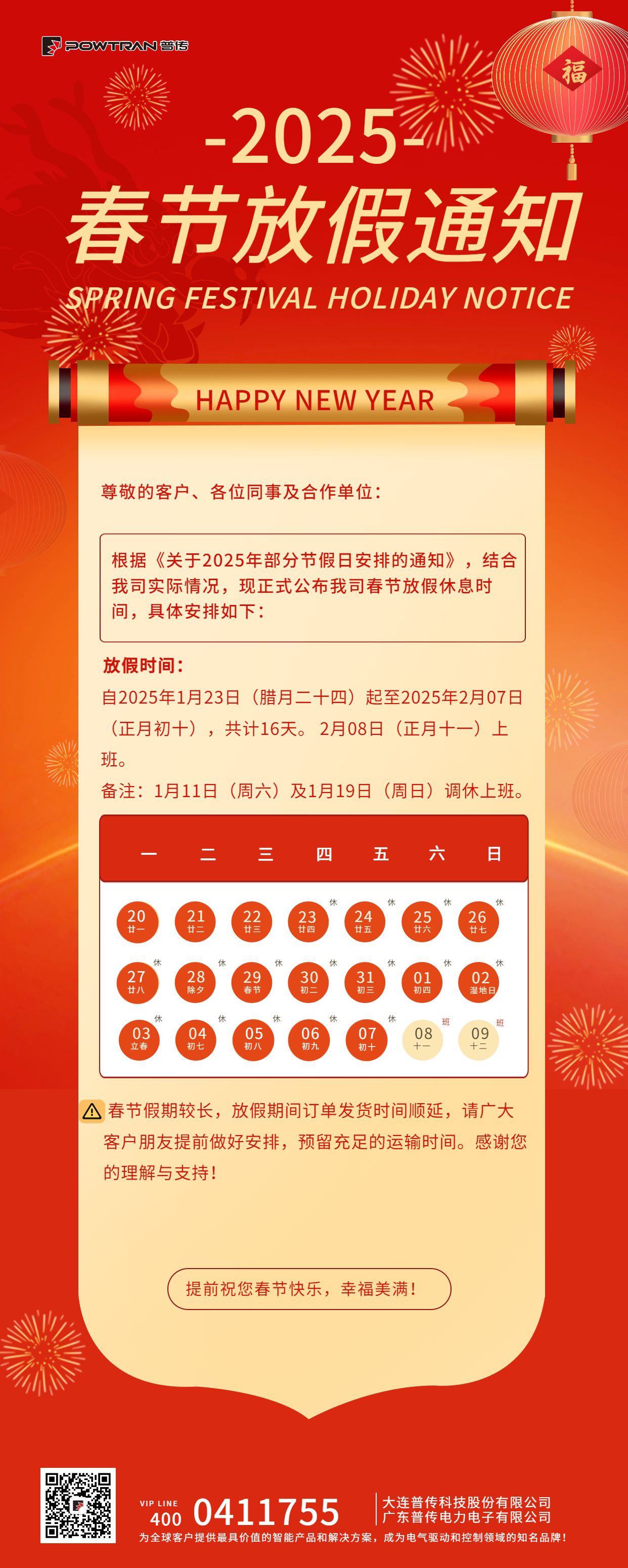 2025春節放假通知