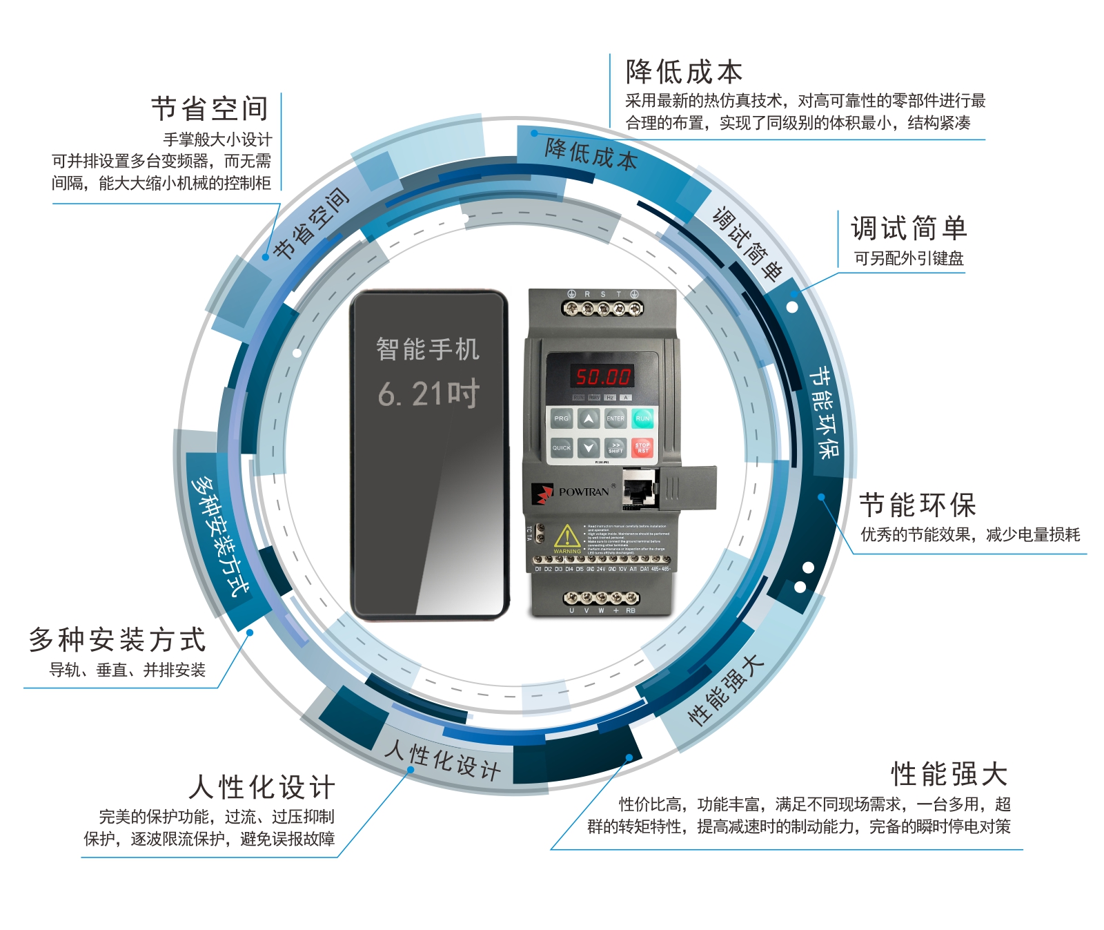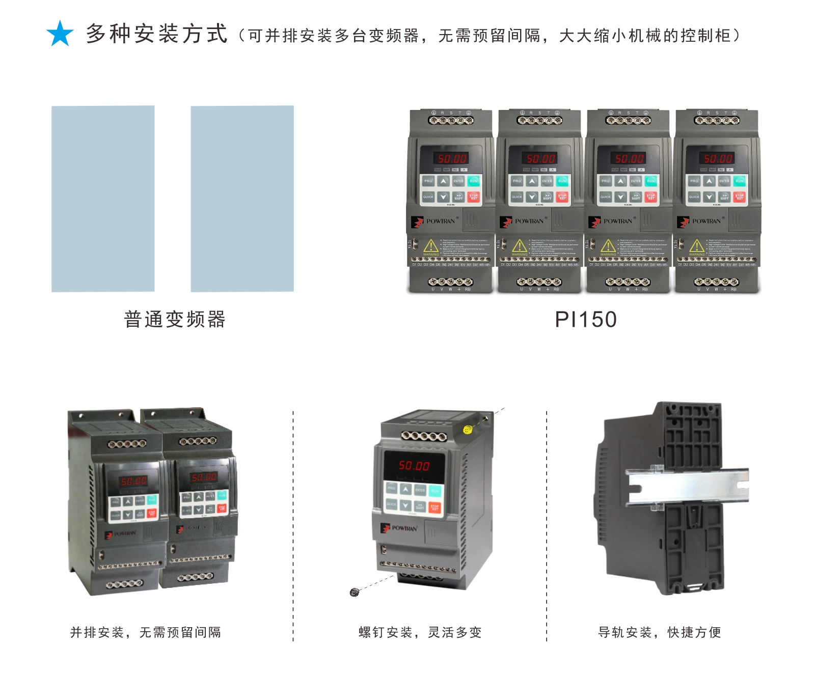 PI150系列變頻(pin)(pin)器是普傳科技結合市(shi)場需求,采用(yong)全(quan)新(xin)設計理(li)念(nian),研(yan)發(fa)出的新(xin)一代小功率變頻(pin)(pin)器,調試更為方便,效率更出眾,應用(yong)更可靠。作(zuo)為一款緊湊型(xing)變頻器,PI150具備安裝便捷、體積小、溫升(sheng)低、強大的軟件(jian)性(xing)能等諸多優點。