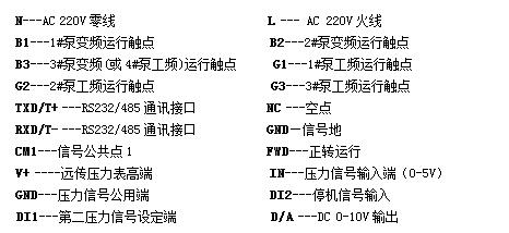 三(san)個泵(beng)工作狀態指示燈P1、P2、P3表(biao)示三臺泵(beng)(beng),當指(zhi)示燈為綠色時(shi)表(biao)示對應泵(beng)(beng)工作在變頻(pin)方式,當指(zhi)示燈為紅色時(shi),表(biao)示對應泵(beng)(beng)工作在工頻(pin)方式。當工作在第二(er)壓(ya)力(消(xiao)防壓(ya)力)狀態時(shi),AL指示燈顯(xian)示綠色;當缺水(停機)端子接通時,AL指示(shi)燈顯示(shi)紅色,同(tong)時控(kong)制器(qi)(qi)所有(you)輸出控(kong)制都停(ting)止,直(zhi)到(dao)缺水(停(ting)機(ji))狀態解除(chu),控(kong)制器(qi)(qi)重新開(kai)始工作。OUT為備用指示(shi)燈。
