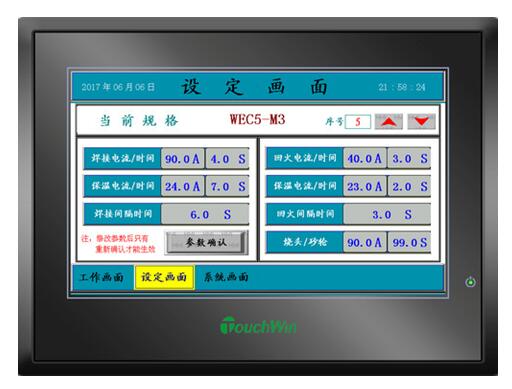 對焊機觸摸屏的組態畫面