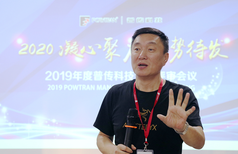 Mr. Zhang, general manager of Powtran Technology, review everyone to the completion of sales in 2019, and use the data to confirm the excellent performance of each sales department and individual.