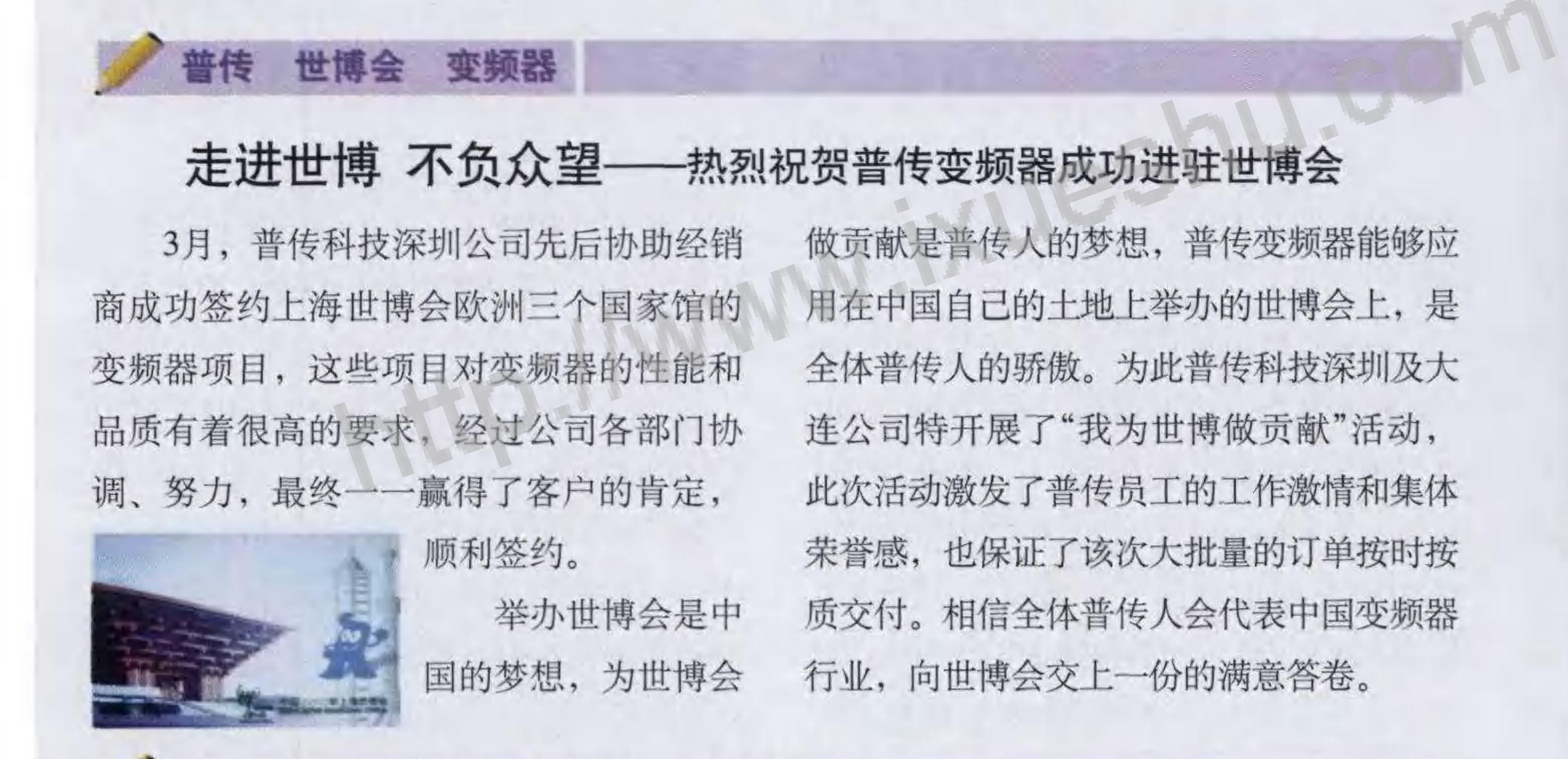 In March 2010, Powtran Technology Shenzhen Branch successively assisted the dealers to successfully sign the inverter projects of three European pavilions in Shanghai World Expo. These projects have high requirements on the performance and quality of the inverter projects. Through the coordination and efforts of various departments of the company, we finally won the customer's recognition and successfully signed the contracts.