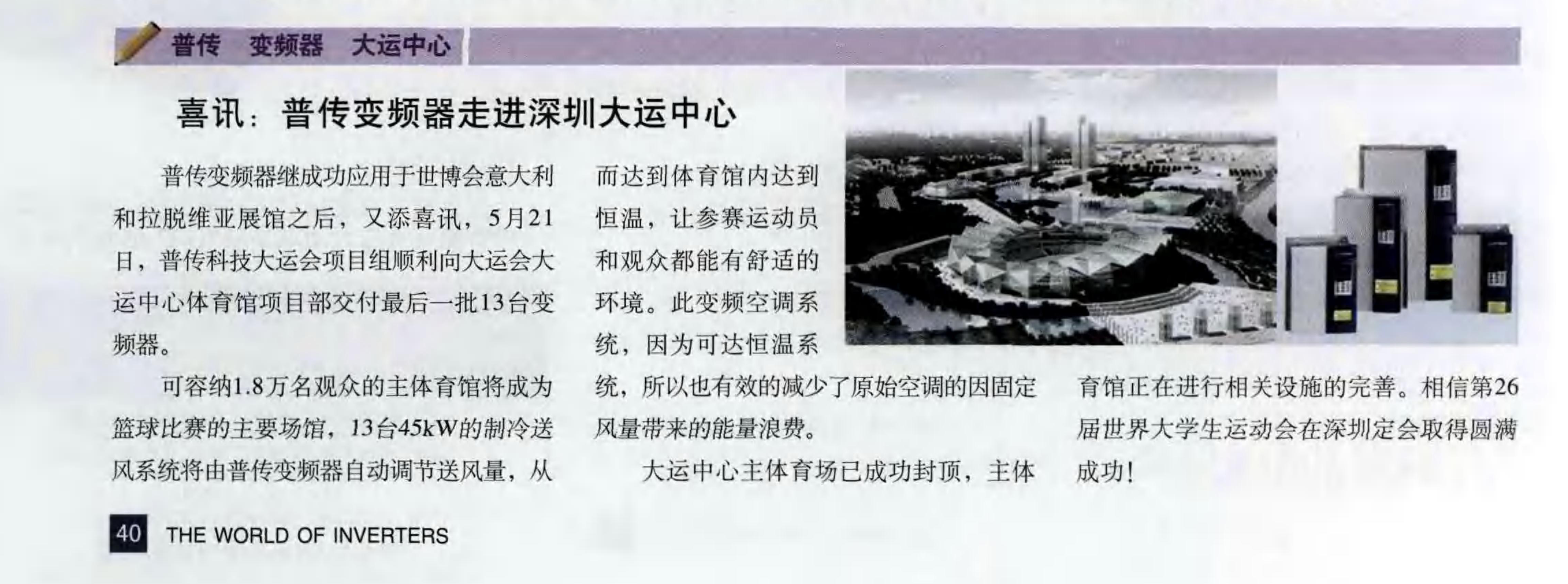 Known to science and technology in 2010 frequency converter after expo successfully applied in Italy and Latvia gallery, add news, on May 21, known to science and technology the universiade project smoothly to the 26th world university games in Shenzhen universiade center gymnasium project department delivery last 13 frequency converter, the batch of inverter is mainly control the universiade center air conditioning air supply system of the main stadium.