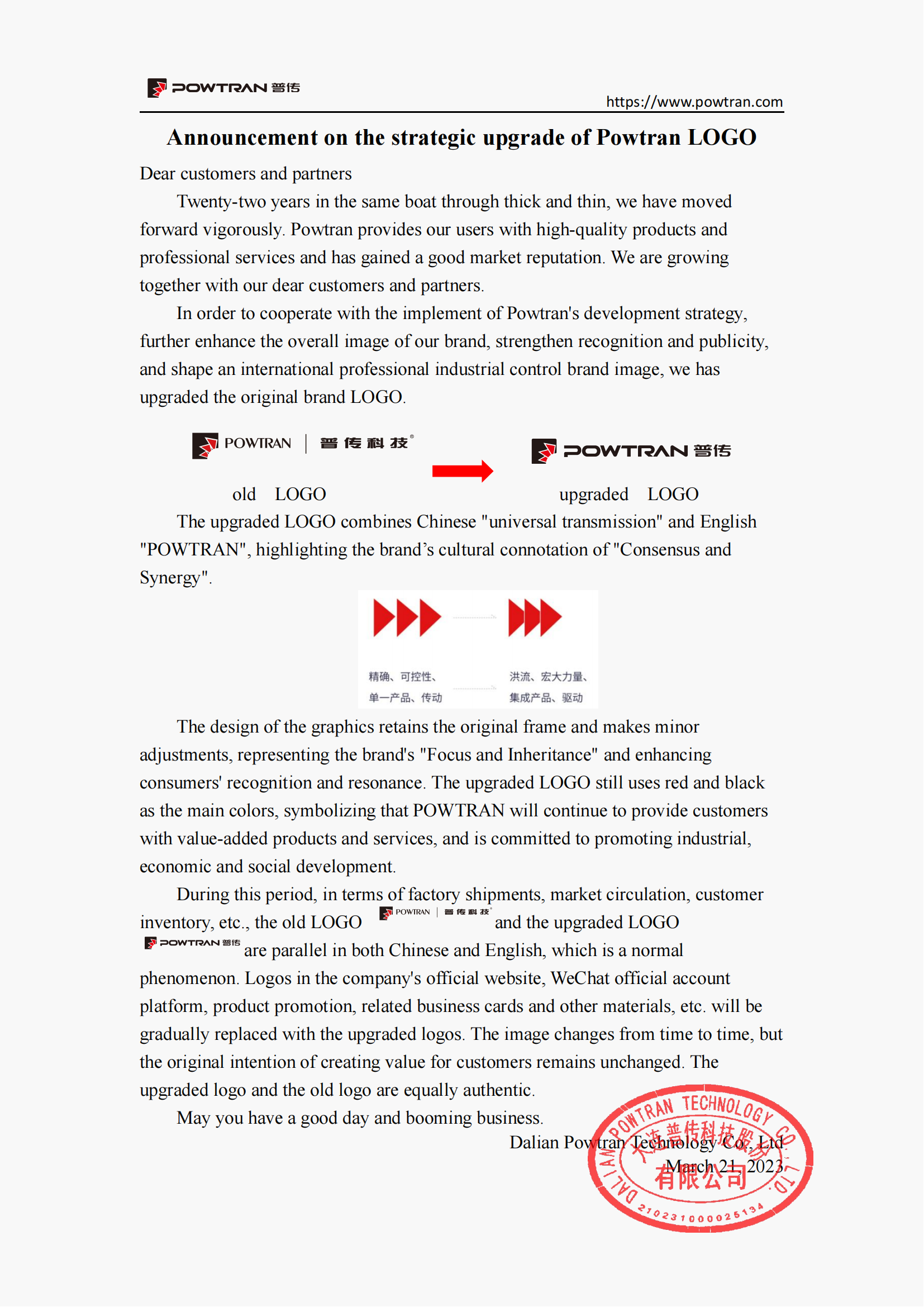 Announcement on the strategic upgrade of Powtran LOGO