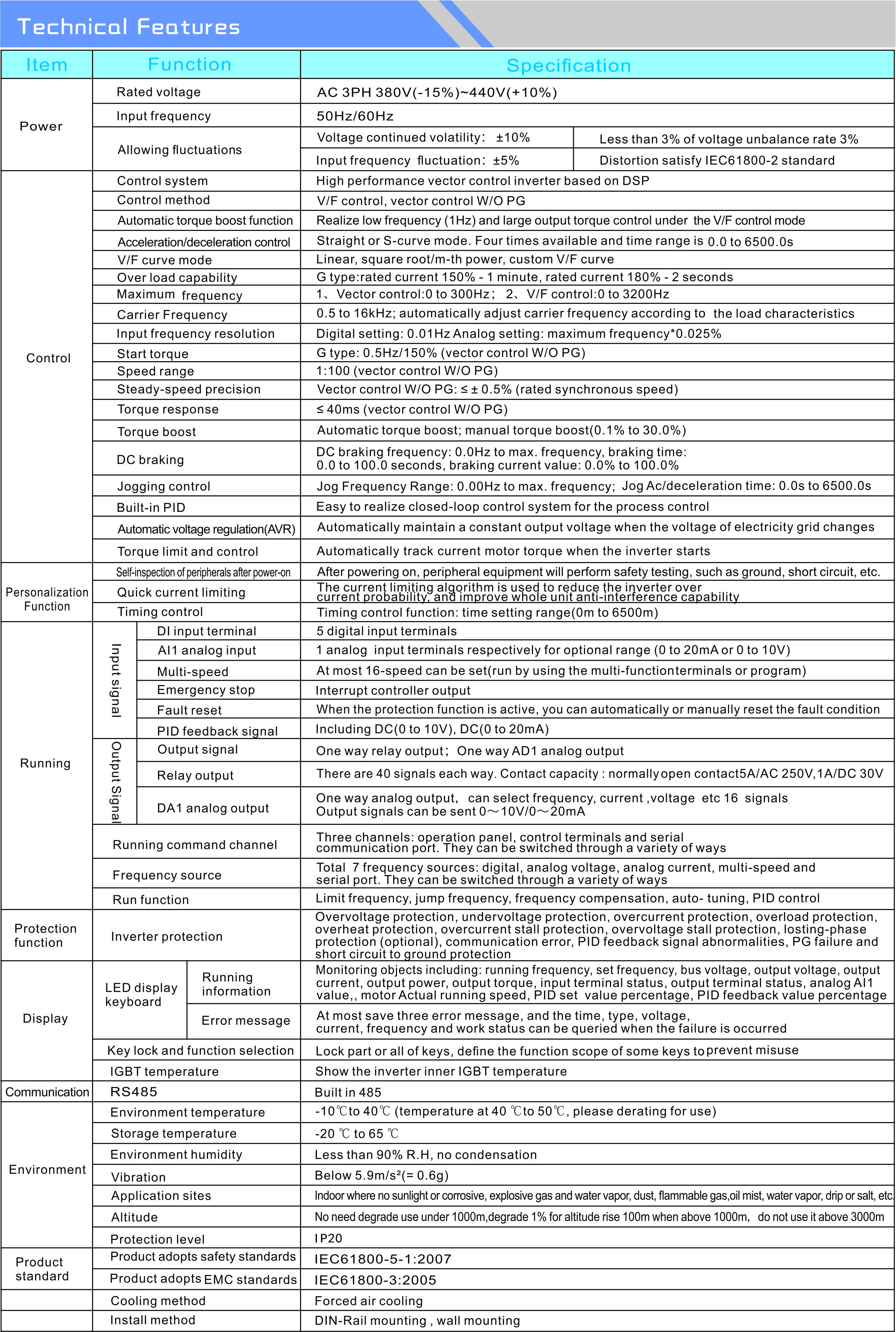 1)Environment temperature -10 ℃ to 50 ℃, temperature at 40 ℃, please derating for use, derating at 3% per 1°C drop. It is not recommended to use the inverter in the environment above 50°C.