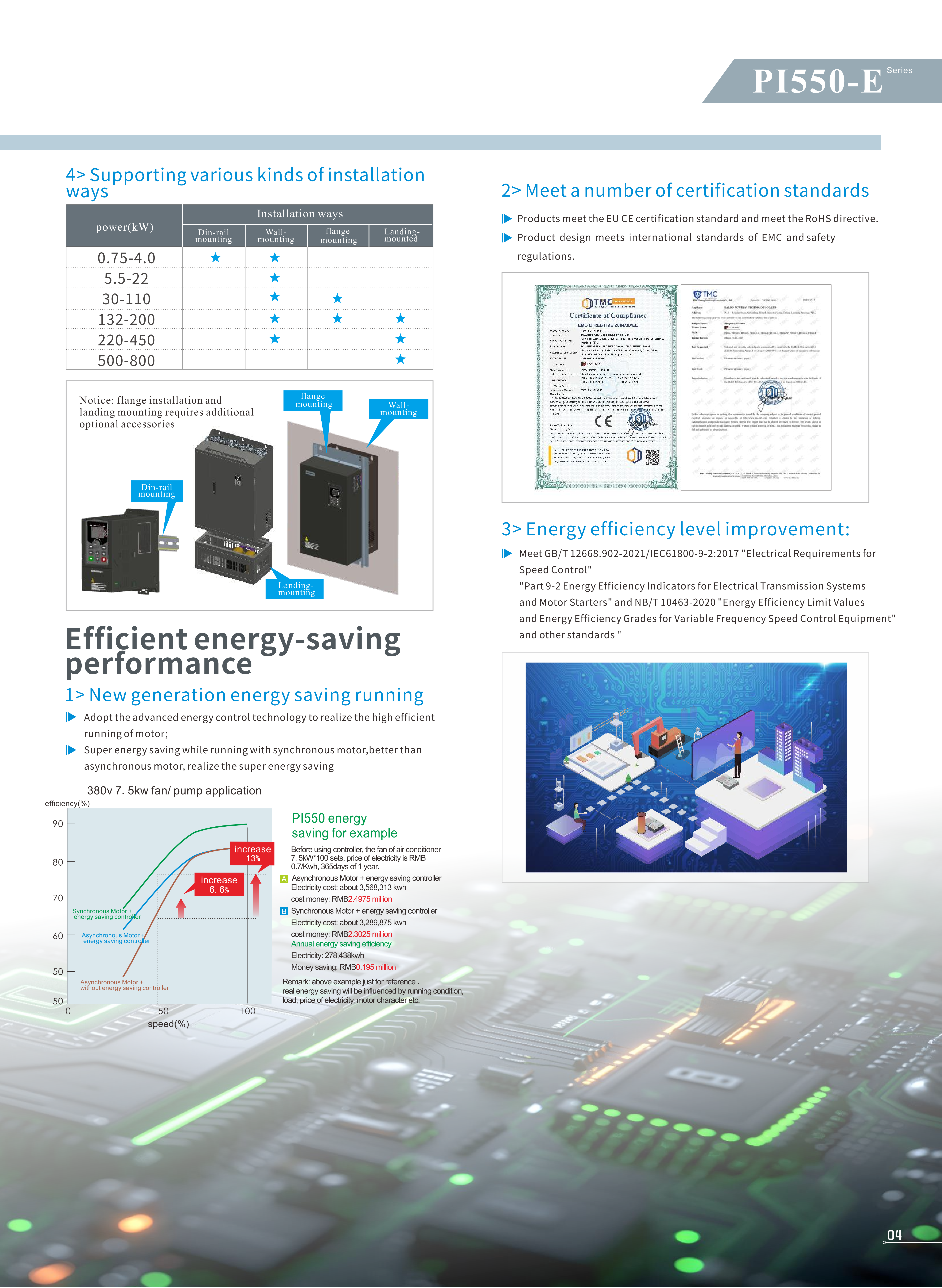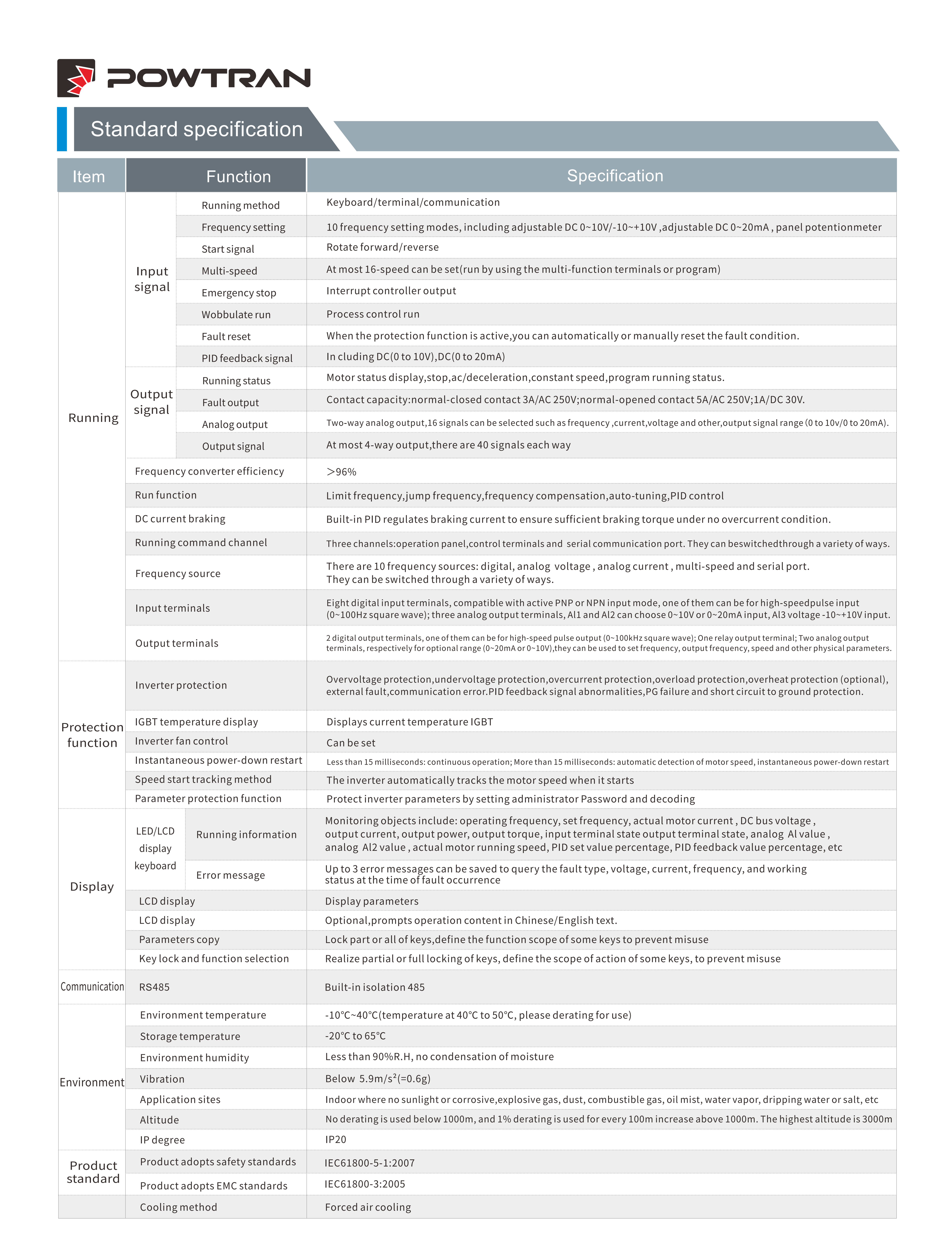 1)Environment temperature -10 ℃ to 50 ℃, temperature at 40 ℃, please derating for use, derating at 3% per 1°C drop. It is not recommended to use the inverter in the environment above 50°C.