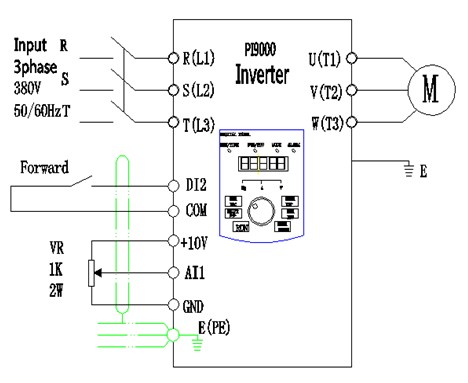 Thus POWTRAN PI9000 inverter parameter should be set as follows:
