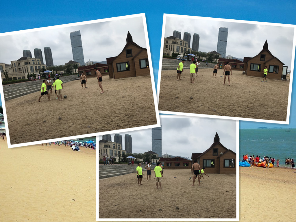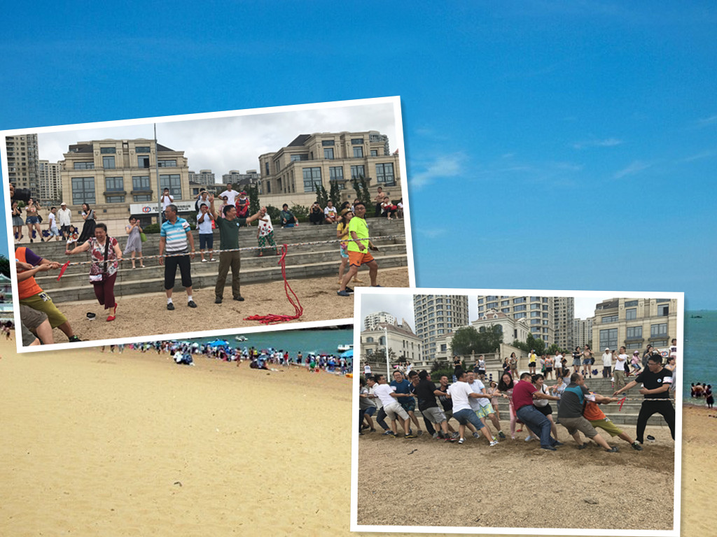 活動分為游戲環節和禮品環節,游戲分別由【青蛙過河】【海邊足球】【海邊拔河】【撕名牌大戰】四項組成,游戲進行中,小伙伴們玩的熱火朝天,好不熱鬧。游戲完畢后,參照排名每組成員還得到了相應的獎品,大家開心的合影留念。