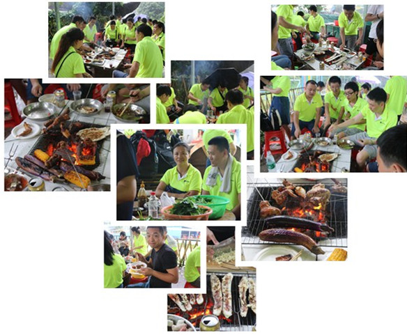 晚餐燒烤時間,大家品嘗親手燒烤的美食,美味飄香,別樣的風情,別樣的愜意。幾個同事一臺戲,烤的熱火朝天,吃得也毫不遜色!