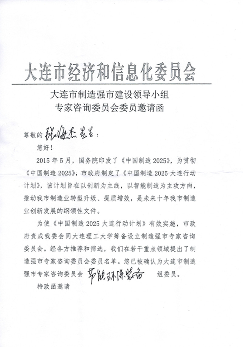 2015年12月7日,大連普傳科技股份有限公司董事長張海杰先生入選“大連制造強市專家咨詢委員會”。