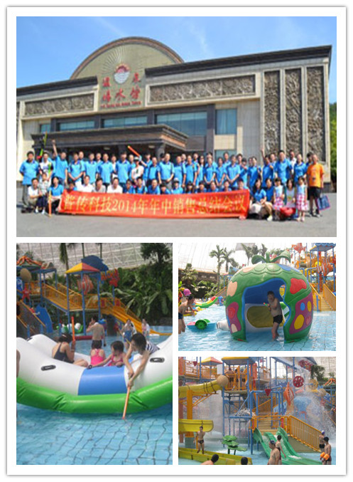 7月7日,成園溫泉山莊一日游玩。成園溫泉嬉水樂園分為三個館,一期館和二期館相連,二期館和三期館相通,三館相連暢游無限。園內設有人參浴、精油浴、天體浴、露天溫泉浴等五十二個不同類型的溫泉泡池。成園溫泉山莊的用水均為取自7億3500萬年前地下3337米的遠古深層溫泉水,純凈度高,富含多種礦物質和微量元素,如鈣、鐵、鎂、錳、鍶、鋅、硒、偏硅酸等。園中設有不同尺寸、深度的溫泉泳池七個,主題游樂戲水區四個。大型海洋水寨、兒童游樂水寨、大型造浪池、五彩競賽滑梯,水傘水龜、蘋果屋、七彩虹門、蹺蹺板等眾多卡通戲水小品和卡通充氣城堡等,不僅小朋友喜歡,讓我們這些“大朋友”也流連忘返。周一的溫泉山莊幾乎就是我們公司的專場,打水仗、游泳、嬉水,所有人都玩得很開心。