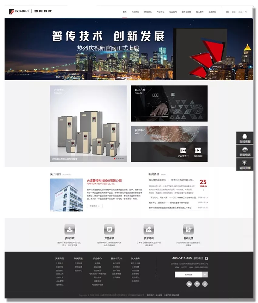 在公司成立17周年之際全面正式上新普傳官網,是對自身企業形象的一次全新詮釋及延伸,引導和輔助著企業新聞宣傳、企業文化建設等工作。它的正式運營標志著我公司在網絡宣傳方面提出了更高的要求,對自己的定位也更加準確。秉承著普傳科技一貫的“始終好品質”的經營理念,在強化其企業形象的同時,更從用戶的實際體驗出發,大大增強了網站的可用性。