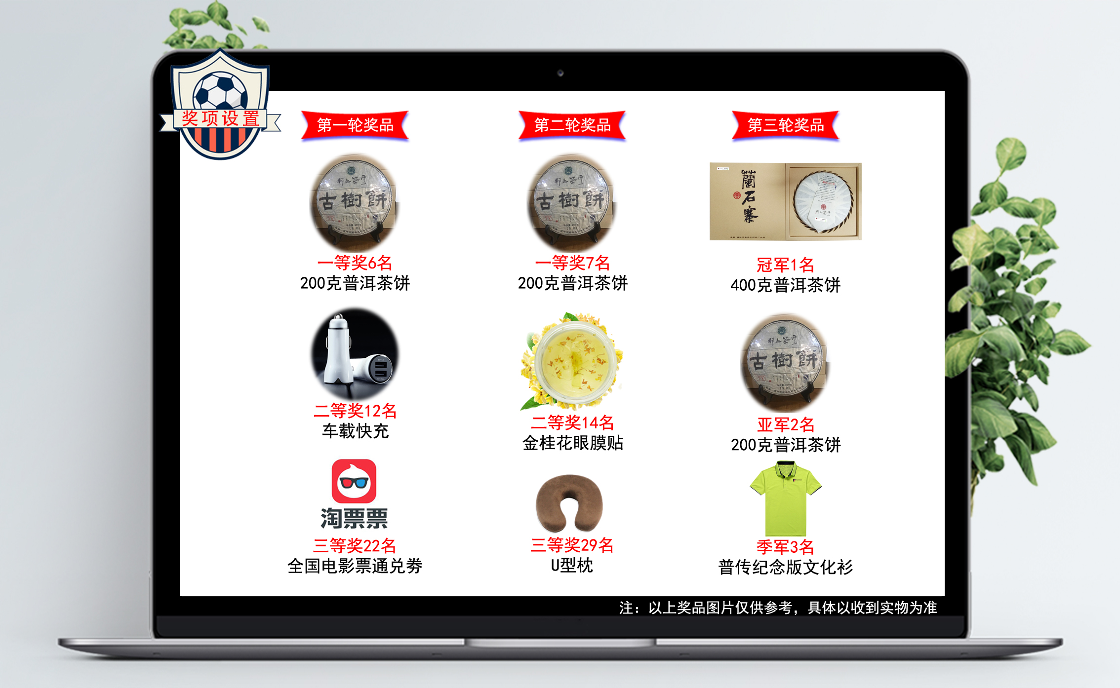 ※ 一等獎6名,贈送價值300元200g古樹餅普洱生茶一份