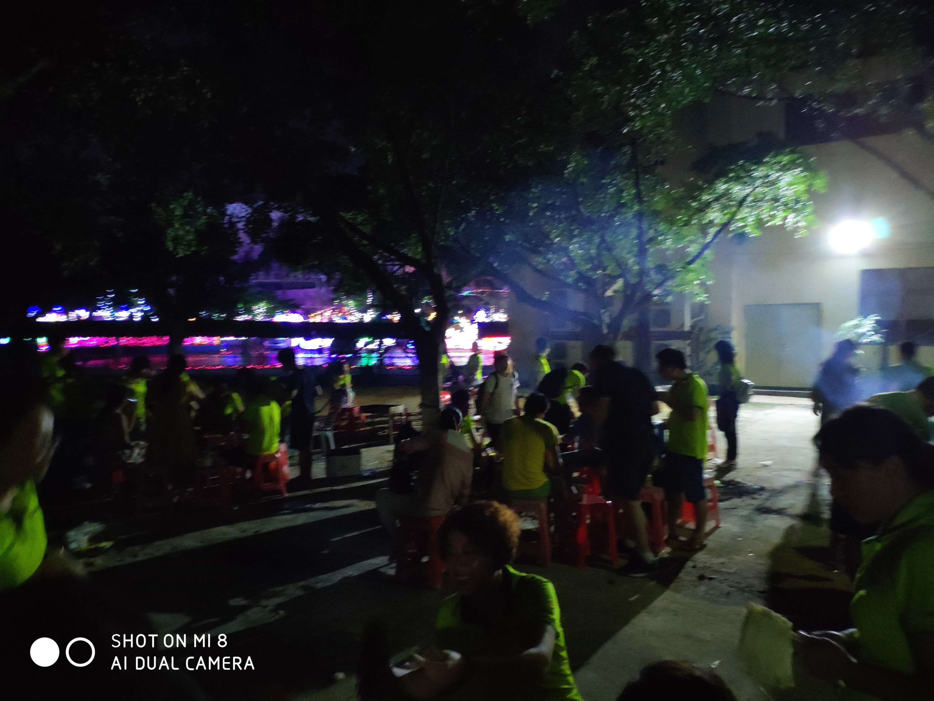 下午5點左右,結束了水上樂園的行程,大家乘車前往東莞觀音山國家森林公園。平日的工作中,大家同心協力,互相配合。DIY燒烤,亦增強了同事間的相互了解,更讓大家學習到了團結一心的重要性。從燒烤前的準備工作洗菜、穿串、到支爐、點火。大家分工明確,不一會兒就把食材烤的香氣撲鼻,準備開動啦!在燒烤區對面就是東莞市觀音山森林公園。酒足飯飽,在燈光的海洋中散散步、欣賞著美麗的夜景,感覺生活是如此美好。