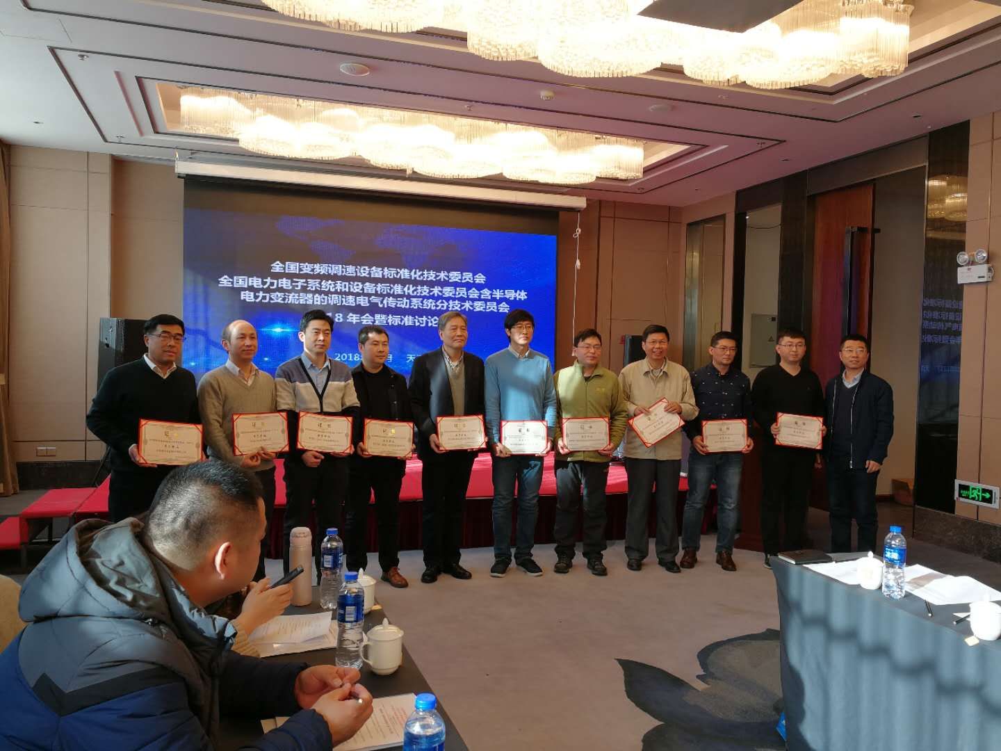 天津天傳電控設備檢測有限公司行業技術部部長、全國變頻調速設備標委會副秘書長、調速電氣傳動系統分技術委員會秘書長韓東明宣讀了2018年度兩個標委會增減委員的批復。浙江省機電設計研究院有限公司副所長、全國變頻調速設備標委會副秘書長阮建國宣讀了2018年標委會先進工作單位和先進個人的表彰決定。會議舉行了表彰和證書頒發儀式。大連普傳科技股份有限公司獲得“全國變頻調速設備標準化技術委員會(TC518)委員單位”榮譽稱號。