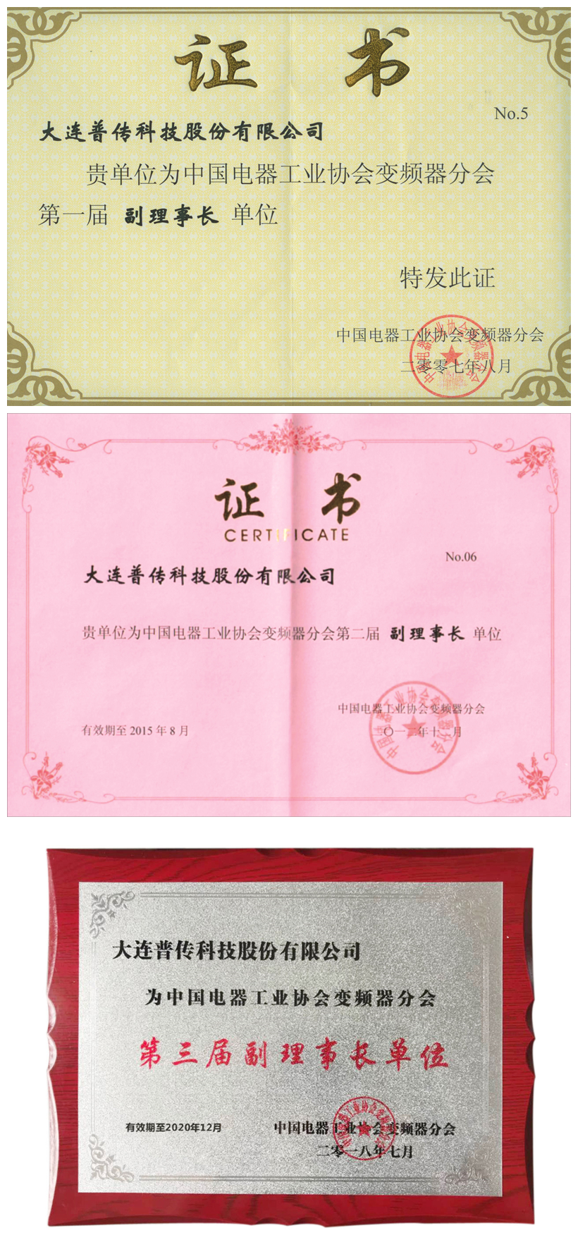普傳科技連續三屆被授予“中國電器工業協會變頻器分會副理事長單位”