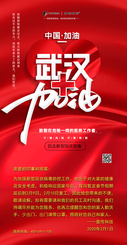 根據國務院辦公廳通知精神,為加強新型冠狀病毒感染的肺炎疫情防控工作,有效減少人員聚集,阻斷疫情傳播,更好保障公司員工、家屬、社會人民群眾生命安全和身體健康,經公司研究決定,延長2020年春節假期至2月9日,2月10日正式復工。放假期間,如您需要任何咨詢和服務,可隨時與我司相關人員聯系或撥打24小時服務熱線:400-0411-755,我們將竭誠為您服務!
