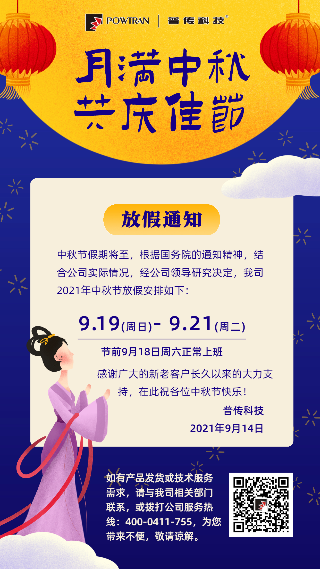 普傳科技2021年中秋節放假通知