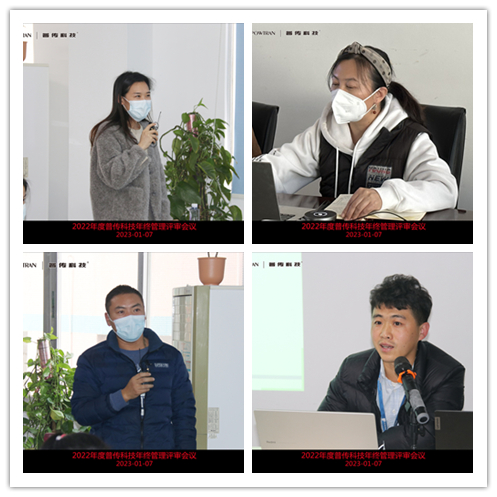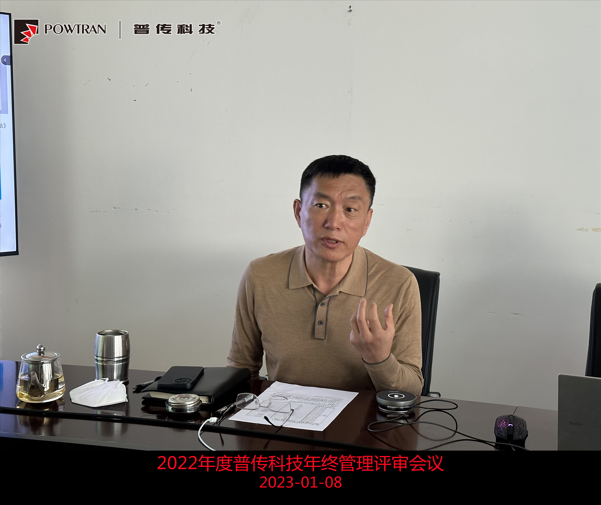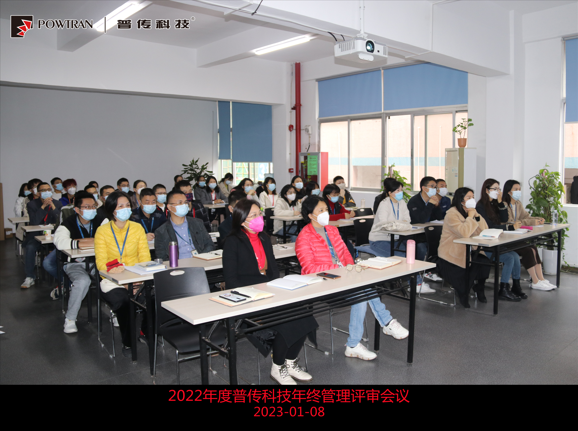 2023年1月7日-8日,普傳科技2022年度管理評審會議在公司會議室召開。公司董事長張海杰,副總經理姜艷梅,及公司各部門總監、主管、一線銷售人員、管理人員等參加會議。