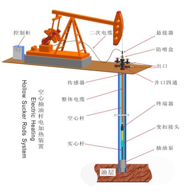 該裝置是將空心抽(chou)(chou)油(you)(you)桿(gan)內穿過電纜并與抽(chou)(chou)油(you)(you)桿(gan)桿(gan)體形成回路,通(tong)以工頻(pin)交流電,利用(yong)內集(ji)膚效(xiao)(xiao)應(ying)原(yuan)理在空心抽(chou)(chou)油(you)(you)桿(gan)壁上(shang)產生(sheng)熱(re)能,對油(you)(you)管(guan)內原(yuan)油(you)(you)進行全程加熱(re),提高油(you)(you)管(guan)內原(yuan)油(you)(you)溫度,降低原(yuan)油(you)(you)粘度,改善其流動性(xing),防(fang)止油(you)(you)管(guan)內原(yuan)油(you)(you)結蠟(la)(la),從而有效(xiao)(xiao)地開(kai)采高凝、高粘、高含蠟(la)(la)原(yuan)油(you)(you)。