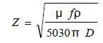 同樣,鋼管阻抗Z的大(da)小(xiao)與頻率f的關系為: