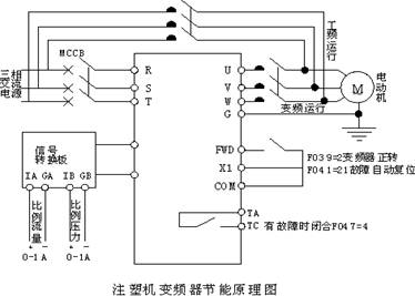 (1)選用(yong)普(pu)傳PI7000Z系列(lie)專用(yong)變頻(pin)(pin)器,過載能(neng)(neng)力強,具流量(liang)、壓力雙反(fan)饋信號接口,按注塑工藝(yi)要求,取雙信和疊加來控制主(zhu)油泵電(dian)機速(su)度。經(jing)一(yi)年來使用(yong),證明(ming)變頻(pin)(pin)器的性(xing)能(neng)(neng)良好,工作可靠,節(jie)電(dian)率(lv)高(gao),主(zhu)電(dian)路采用(yong)工頻(pin)(pin)-變頻(pin)(pin)二(er)套(tao)電(dian)源(yuan)供電(dian)方式,以確(que)保不間斷的工作。見(jian)下(xia)圖